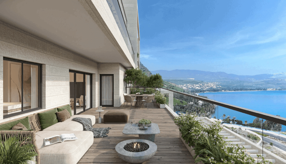 Unique Galilean waterfront residential complex. Thirteen terraced boutique buildings, feature spacious, indulgent balconies overlooking the Sea of Galilee.